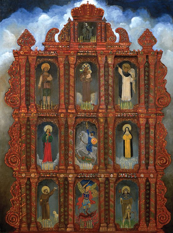 In this HOCUS painting, Felipe Segundo, after whom the Philippines was named, is enshrined at the pinnacle of the ornate retablo. It may look blasphemous, but it attests to the true role of the Spanish Crown in the Christianization of the natives of these islands.